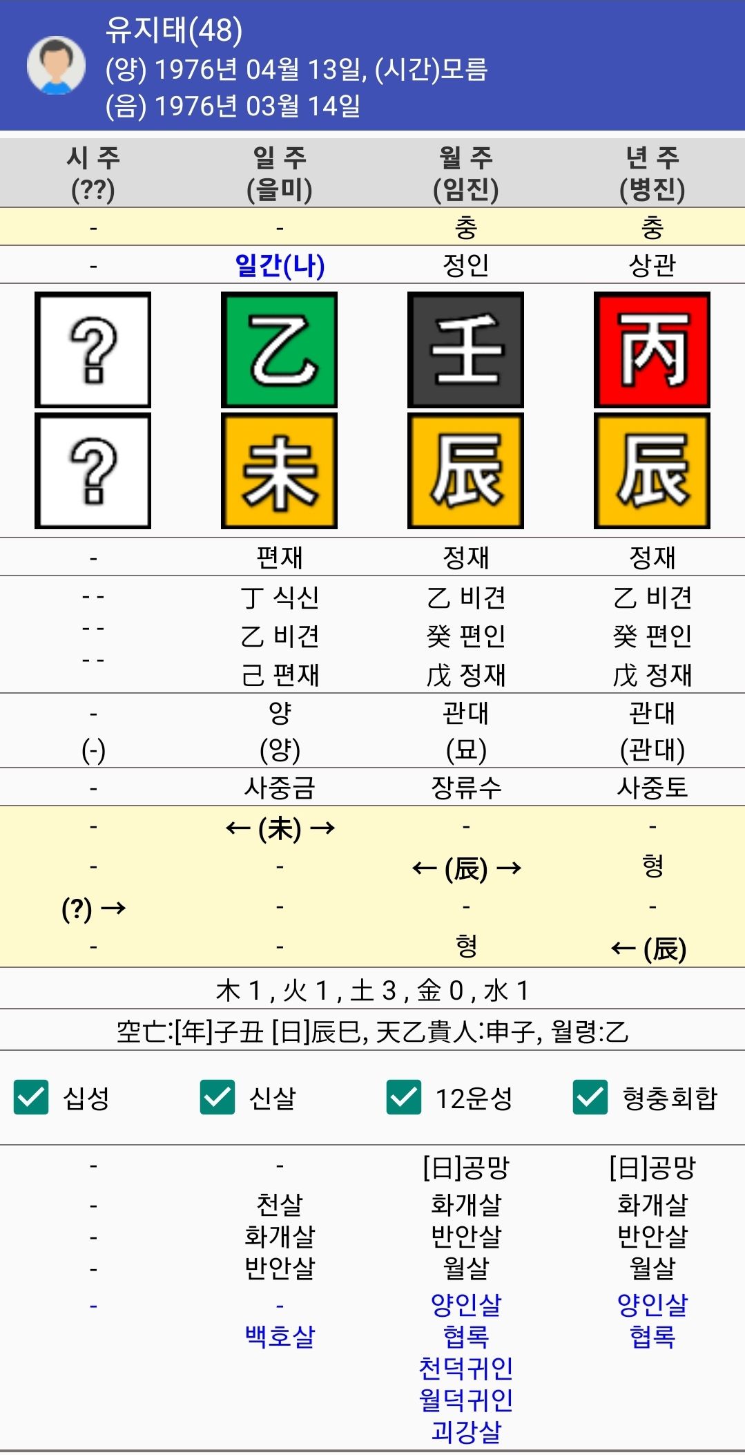 요근래 '비질란테' 라는 드라마를 정주행하다가 유지태님이 인상에 남아 사주를 분석해 보았습니다. 을미일주에 재성이 많은 사주입니다. 월주는 괴강이고 일주는 백호, 양인이 다수 포진해있네요. 일단, 과단성이 강한 사람이고 자신의 기술이나 전문성으로 직업을 이루는 팔자가 됩니다. 괴강에 백호이니 사람 자체가 강단이 있고 카리스마, 때에 따라서 능력자의 면모를 보이기도 합니다.