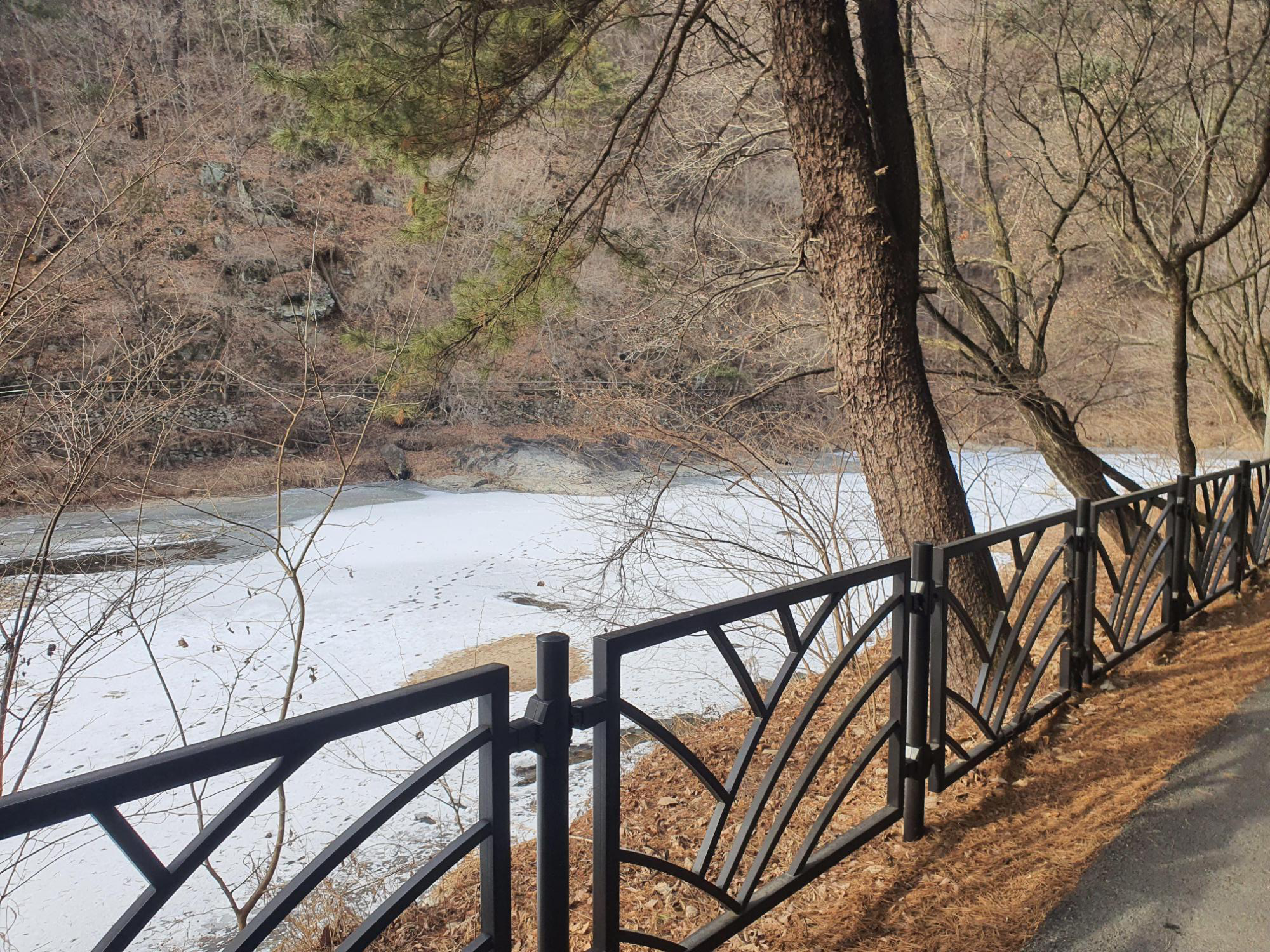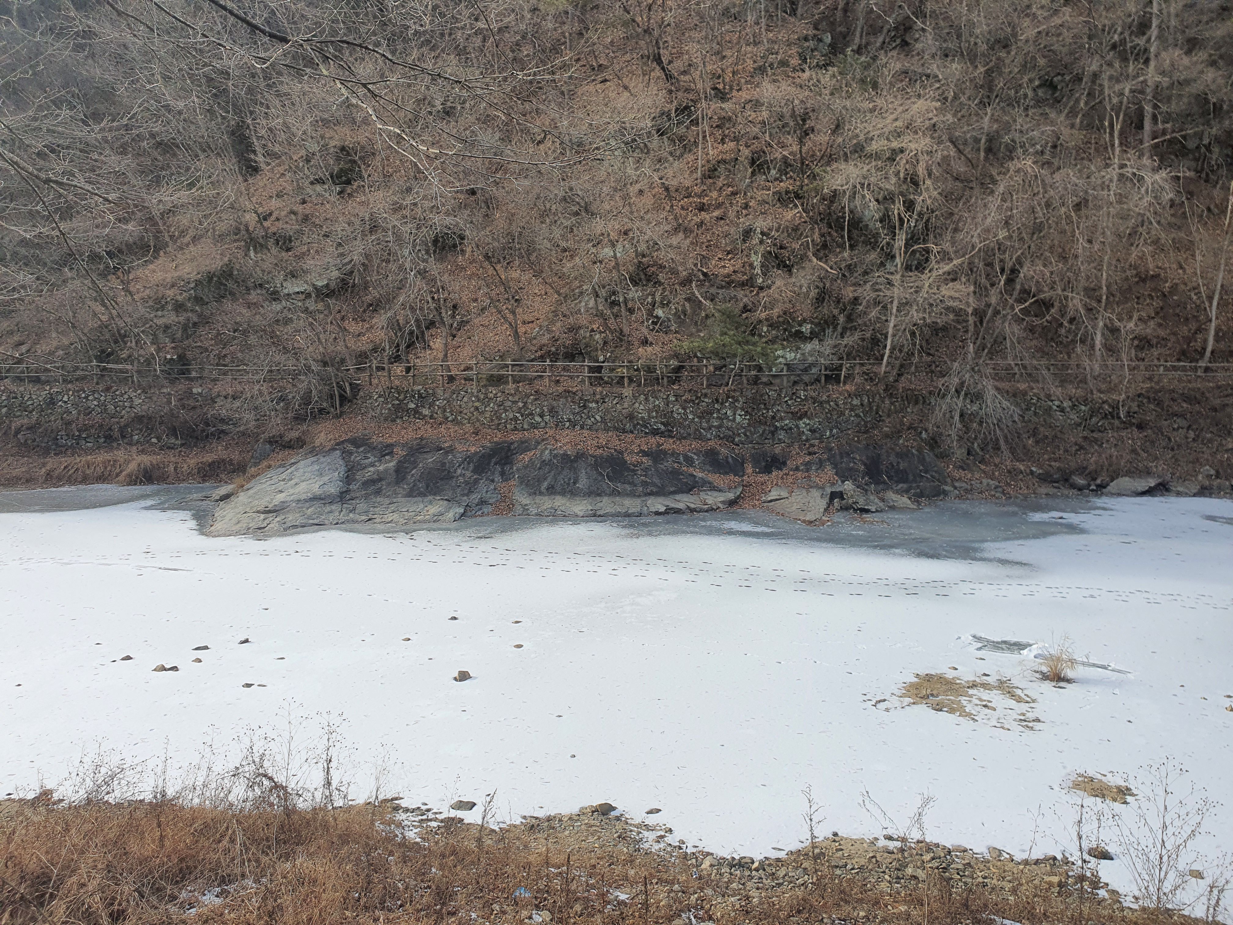 꽁꽁 얼어붙었는지 발자국이 보이네요