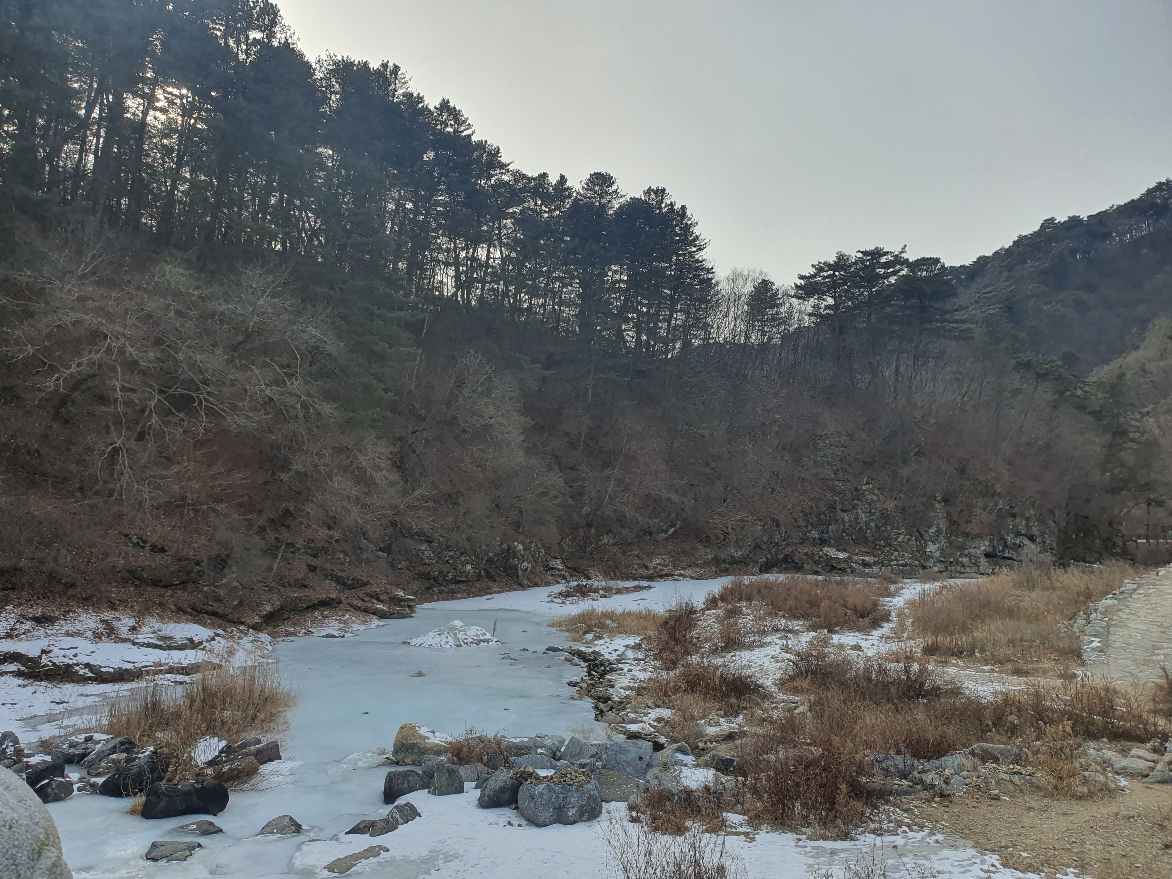 계곡물이 얼어붙어 있는 모습입니다
